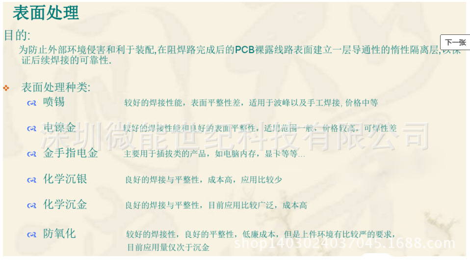 21.噴錫 為了 防止PCB裸銅面氧化并使其 保持 良好的焊錫性,板廠需對(duì)PCB進(jìn)行表面 處理,如HASL、OSP、化學(xué)浸銀、化 鎳浸金……
